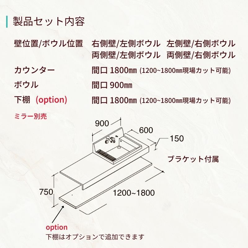 他の画像を見る 豊富なカラーでスタイリッシュで使いやすいカウンター洗面 洗面化粧台 カスタムバニティ カウンター間口800~1800mm 壁位置 両側壁 現場カット可 ボウル間口600mm ボウル位置中央 シャワー水栓 リクシル LIXIL 造作風 受注生産1ヶ月以内で発送 メーカー希望価格 ¥ 224,400 のところ 当店通常価格 ¥ 106,720 税込 会員特別価格 ¥ 103,510 税込 詳細を見る お気に入りに登録する