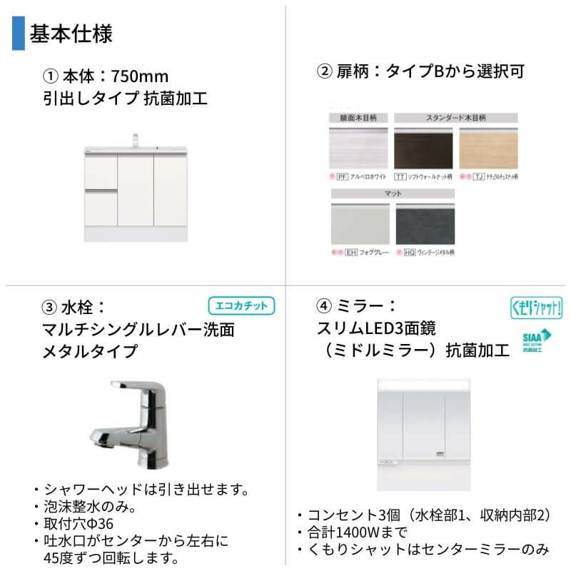 他の画像を見る 洗面台 パナソニック シーライン セットプラン GC-755M 洗面台 パナソニック シーライン セットプラン GC-755M 扉柄タイプB 幅750 奥行530mm フロート引出しタイプ 抗菌加工 Panasonic D530 おしゃれ リフォーム DIY お客様確認後14営業日以内で発送 メーカー希望価格 ¥ 308,220 のところ 当店通常価格 ¥ 107,900 税込 会員特別価格 ¥ 104,660 税込 詳細を見る お気に入りに登録する