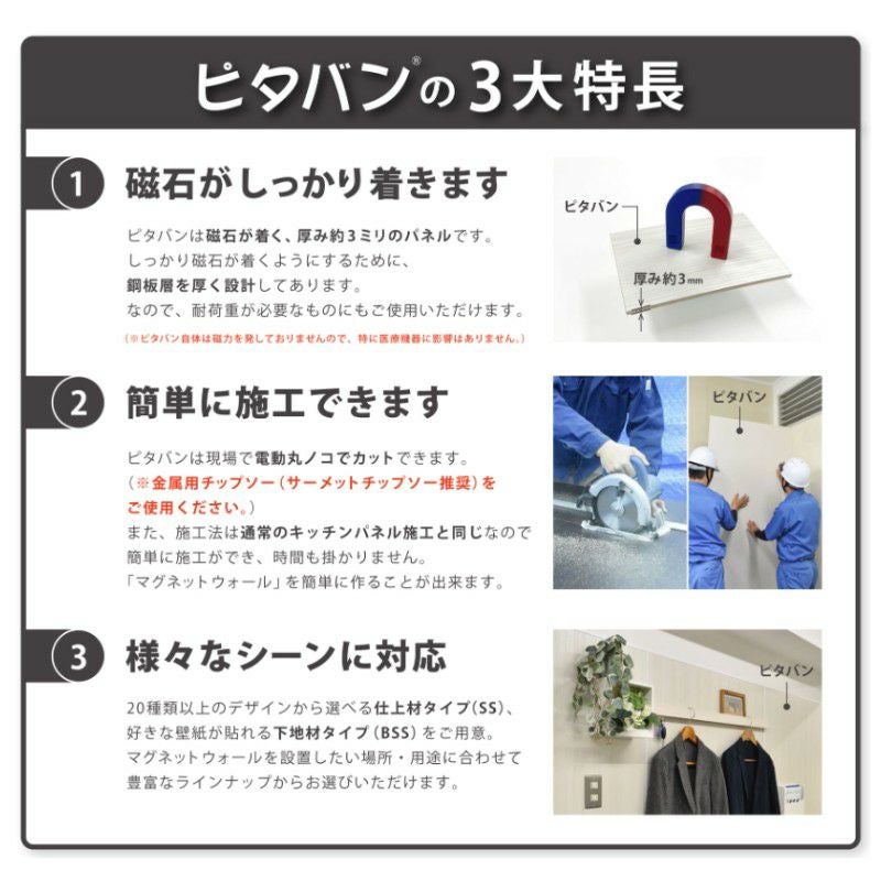 他の画像を見る マグエックス パネル マグネット magX 磁石 【法人限定販売】ピタバンBSS MDF仕様 厚み3×幅910×高さ1820mm マグネット パネル 下地材 磁石 壁装材 マグエックス magX リフォーム メーカーお取り寄せ14営業日以内で発送 メーカー希望価格 ¥ 59,400 のところ 当店通常価格 ¥ 39,800 税込 会員特別価格 ¥ 38,600 税込 詳細を見る お気に入りに登録する