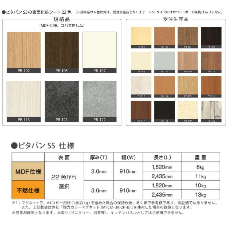 他の画像を見る マグエックス パネル マグネット magX 磁石 【法人限定販売】ピタバンSS 不燃仕様 厚み3×幅910×高さ2335mm マグネット パネル 仕上げ材 磁石 壁装材 マグエックス magX リフォーム メーカーお取り寄せ14営業日以内で発送 メーカー希望価格 ¥ 123,640 のところ 当店通常価格 ¥ 82,900 税込 会員特別価格 ¥ 80,400 税込 詳細を見る お気に入りに登録する
