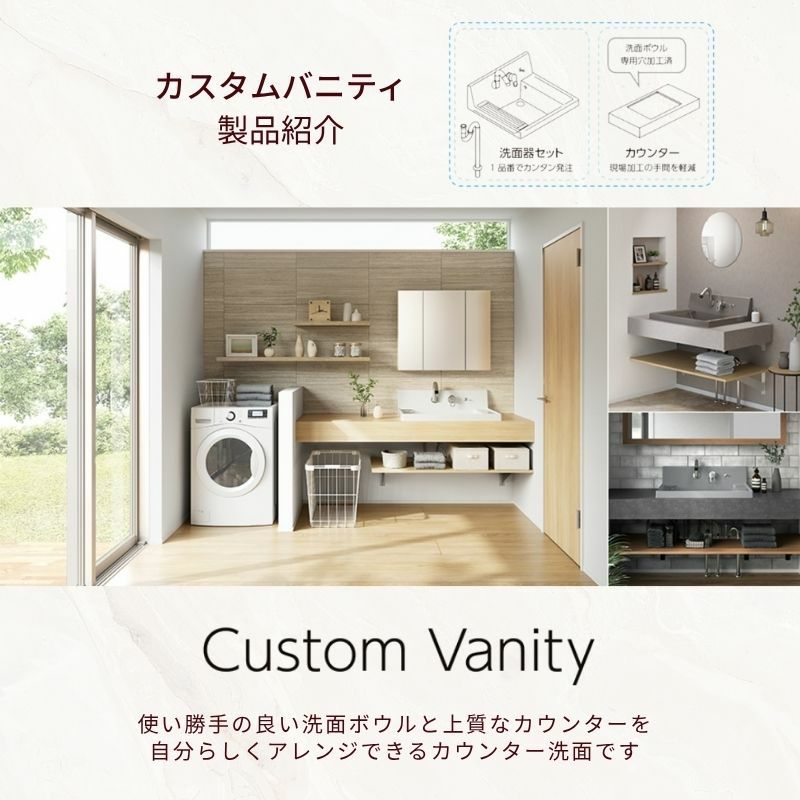 他の画像を見る 豊富なカラーでスタイリッシュで使いやすいカウンター洗面 洗面化粧台 カスタムバニティ カウンター間口800~1800mm 壁位置 両側壁 現場カット可 ボウル間口600mm ボウル位置中央 シャワー水栓 リクシル LIXIL 造作風 受注生産1ヶ月以内で発送 メーカー希望価格 ¥ 224,400 のところ 当店通常価格 ¥ 106,720 税込 会員特別価格 ¥ 103,510 税込 詳細を見る お気に入りに登録する