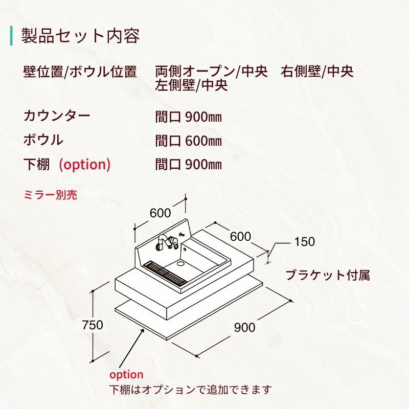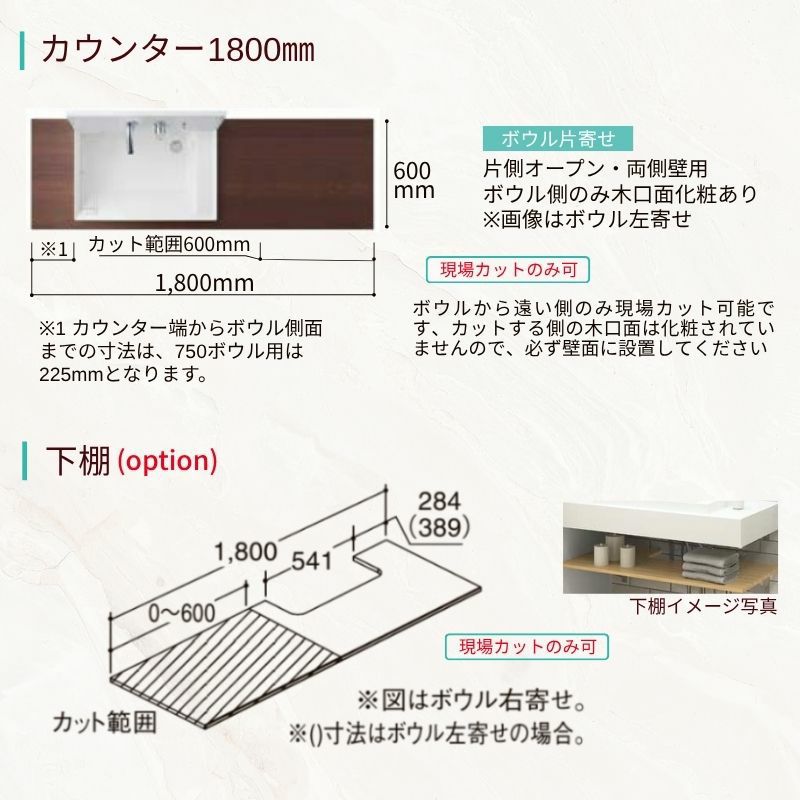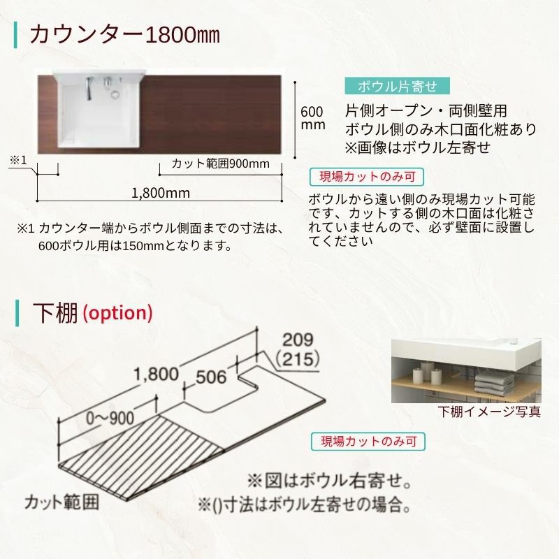 他の画像を見る 豊富なカラーでスタイリッシュで使いやすいカウンター洗面 洗面化粧台 カスタムバニティ カウンター間口900~1800mm 壁位置 両側壁/片側オープン 現場カット可 ボウル間口600mm ボウル位置右または左 シャワー水栓 LIXIL 受注生産1ヶ月以内で発送 メーカー希望価格 ¥ 228,250 のところ 当店通常価格 ¥ 108,550 税込 会員特別価格 ¥ 105,290 税込 詳細を見る お気に入りに登録する