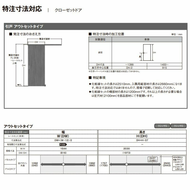 他の画像を見る リクシル ラシッサS オーダーサイズ クローゼットアウトセット LIXIL オーダーサイズ リクシル ラシッサS クローゼットドア 引戸 アウトセットタイプ LAA DW540~990×DH1700~2368mm 押入れ 棚 リフォーム DIY メーカーお取り寄せ10~12営業日で発送 メーカー希望価格 ¥ 131,230 のところ 当店通常価格 ¥ 65,610 税込 会員特別価格 ¥ 63,600 税込 詳細を見る お気に入りに登録する